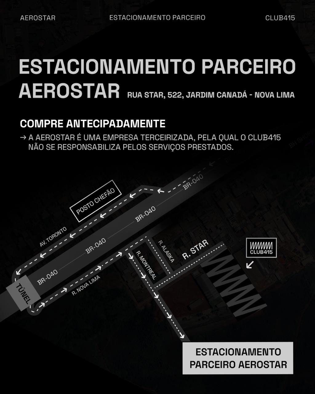 A Aerostar é uma empresa terceirizada, pela qual o Club415 não se responsabiliza pelos serviços prestados.
